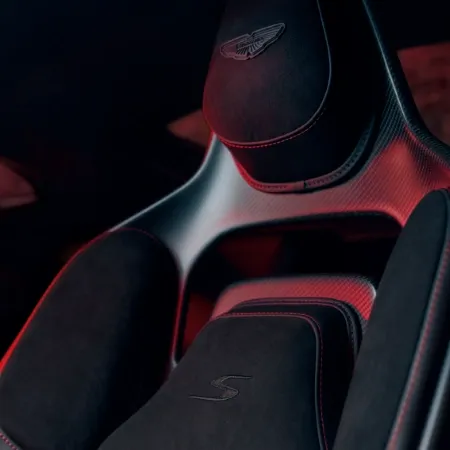 The performance seatās low hip point connects the driver more closely to the car, offering a new sightline and greater precision behind the wheel. Every Vantage S interior includes embroidered S logos on the upper shoulder panels, with nearly 2,500 stitches and over 16 meters of thread. A clear statement of the carās dedication to both luxury and performance. A first in the automotive industry, Vantage S also offers optional āsculpted headrestsā.